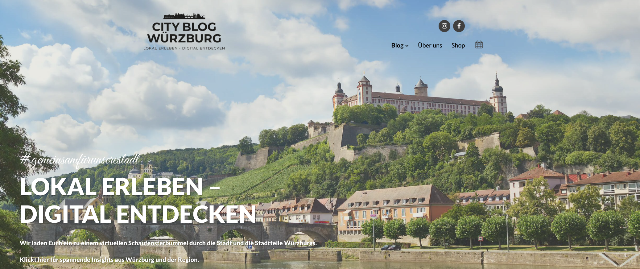 Der City Blog Würzburg ist ein Gemeinschaftsprojekt der teilnehmenden Händler, Dienstleister, Gastronomen und Kulturschaffenden aus Würzburgs Zentrum und den Stadtteilen. Regionale und überregionale Influencer fertigen Blog-Beiträge zu Produkten, Angeboten und Unternehmensnachrichten. Über Facebook und Instagram werden die Produkt- und Serviceangebote an unterschiedliche Zielgruppen herangetragen. Im Gegensatz zu anderen Regionalkonzepten setzt der City Blog Würzburg auf eine Vielzahl von Influencern mit jeweils eigenen Reichweiten. Die Blogger nutzen jeweils ihre eigenen Follower in den sozialen Medien als Multiplikatoren für die Beiträge. Durch ausgewählte Hashtags werden die Beiträge auch in den Online-Suchmaschinen auffindbar.