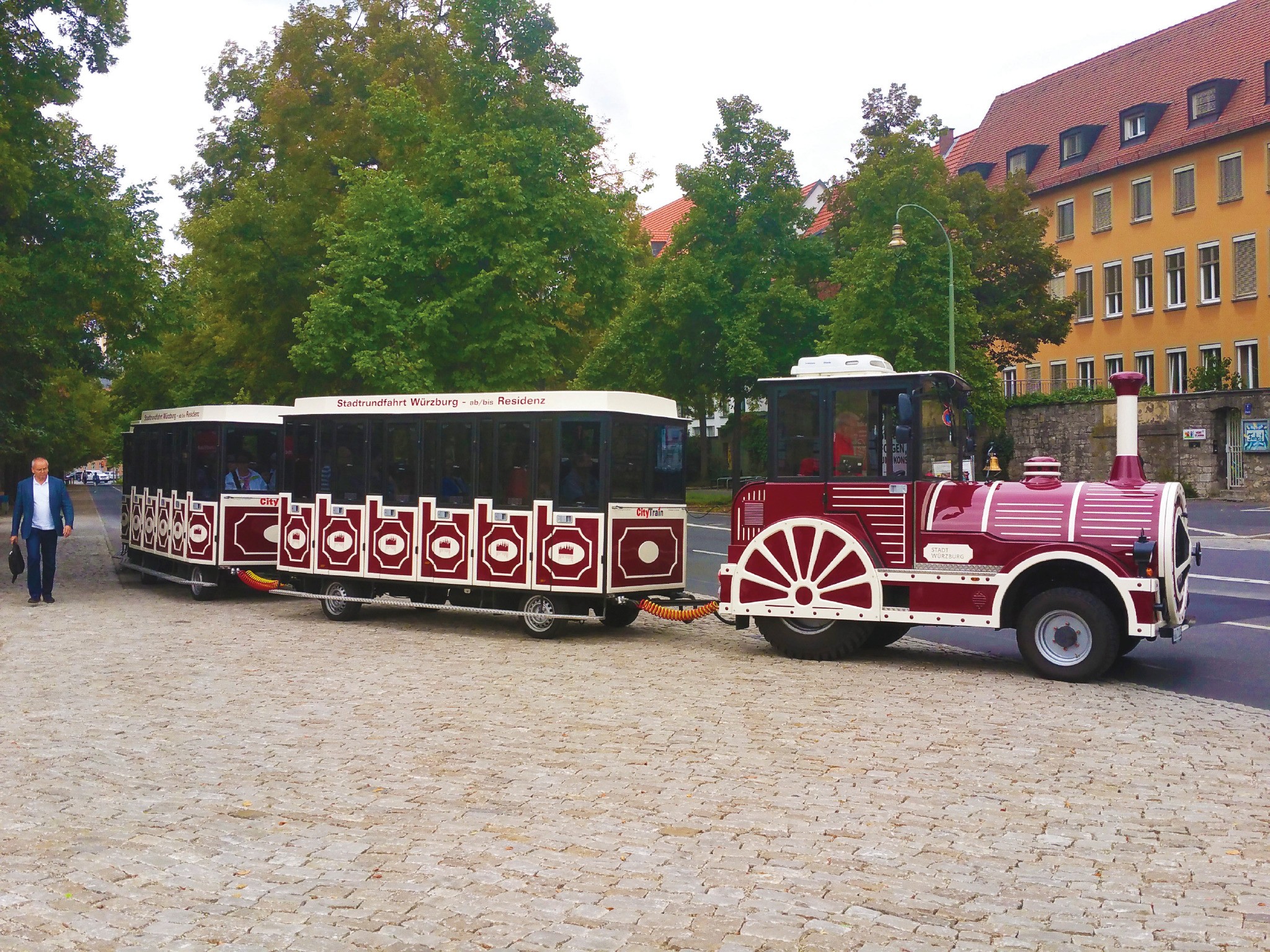 Fahren Sie mit CITY TOUR durch die Altstadt und durch die einzigartige Geschichte Würzburgs. Von der prunkvollen Residenz, zum Dom, den Main entlang und in Sichtweite an der Festung Marienberg vorbei. Alles ist für Sie bequem von der Bahn aus zu bestaunen. Nebenbei erfahren Sie Witziges und Wissenswertes, Altertümliches und Aktuelles, Glanzvolles und möglicherweise auch Grausames, Romantisches und Temperamentvolles über Würzburg und seine Bewohner. Auf dieser Tour erleben Sie die Highlights aus mehreren Jahrhunderten in ca. 40 Minuten und können danach die Stadt gezielt auf eigene Faust erkunden, sich einer Stadtführung zu Fuß anschließen oder eine Fahrt auf dem Main z.B. nach Veitshöchheim unternehmen. Die Stadtrundfahrt ist in den Sprachen: Englisch, Französisch, Italienisch, Russisch und Spanisch möglich.