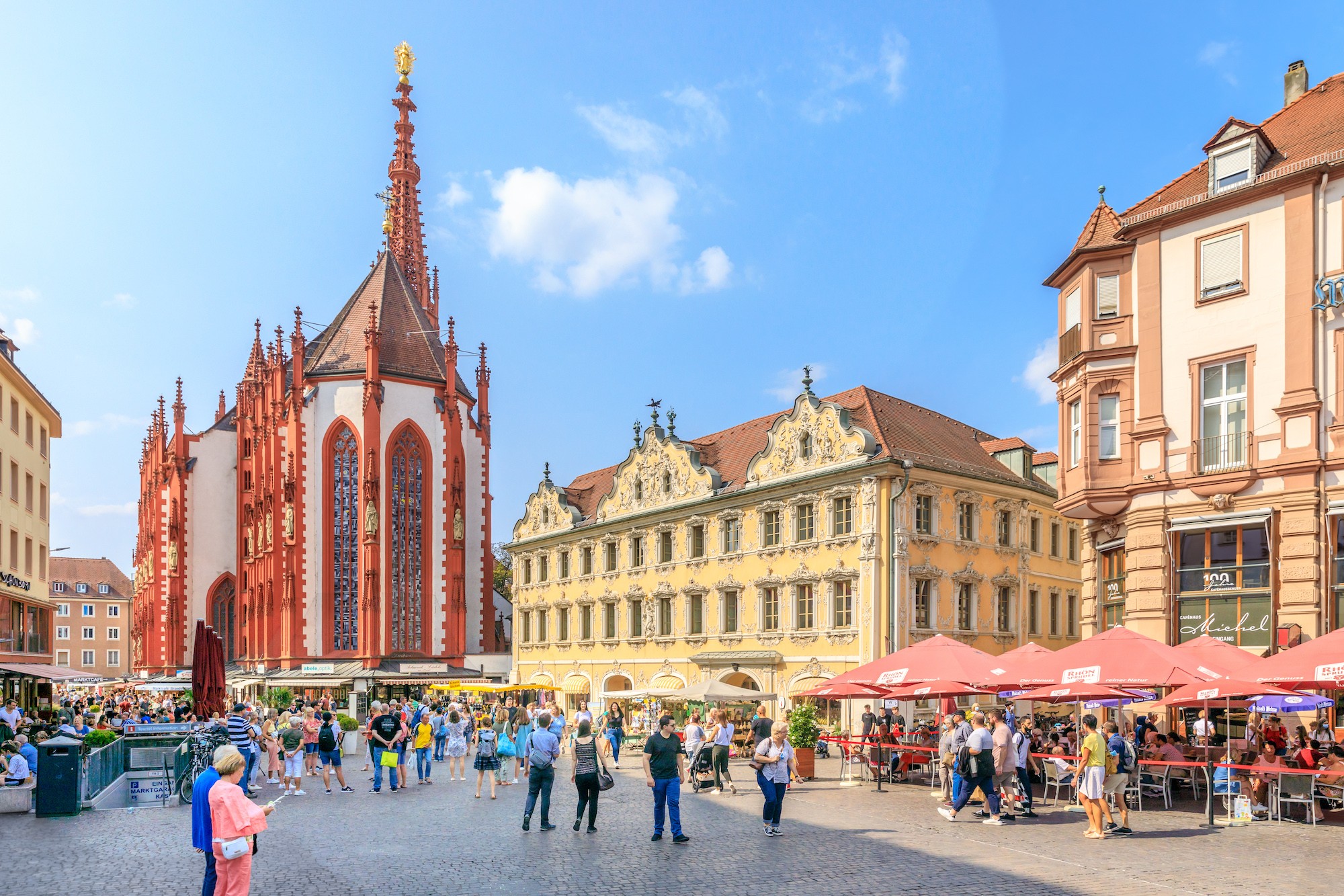 At every turn, on this entertaining walk through Würzburg's old town, you will experience many sights that are witness to the eventful history of the city: The Falkenhaus with its magnificent Rococo facade, the Gothic Marienkapelle with Tilman Riemenschneider's sandstone figures Adam and Eve, the market square, Neumünster and the Lusam garden with the tomb of the minstrel Walther von der Vogelweide. After the town hall with Grafeneckart you can enjoy the great view from the Old Main Bridge to the Marienberg Fortress and the pilgrimage church Käppele, built by Balthasar Neumann.