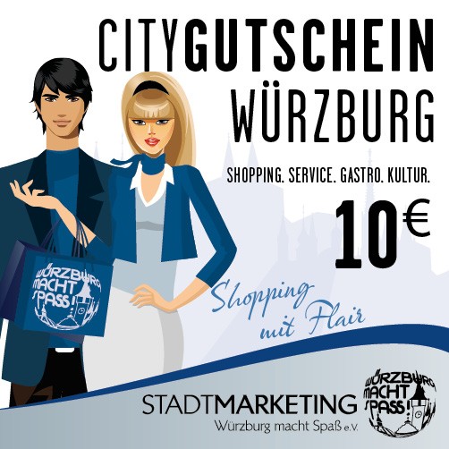 (Würzburg) Seit 2007 gibt das Stadtmarketing „Würzburg macht Spaß“ e. V. den CityGutschein Würzburg als Kundenbindungsinstrument für den Würzburger Handel, Dienstleister und Gastronomen heraus. Ein Erfolgsmodell mit wachsendem Zuspruch und konstant steigendem Verkauf. Insgesamt sind zurzeit über 100.000 Gutscheine im Umlauf. Mit diesen kommt den teilnehmenden Würzburger Unternehmen ein enormer Umsatz zu Gute, der nicht ins Umland oder über das Internet abfließen kann. So wurden allein im letzten Jahr über 800.000 Euro durch Citygutscheine in Würzburg umgesetzt. Der Zusatzumsatz pro Gutschein beträgt dabei lt. Statistik 18,41 Euro – somit konnten im letzten Jahr über 2,2 Mio. Euro an den Wirtschaftsstandort Würzburg gebunden werden.