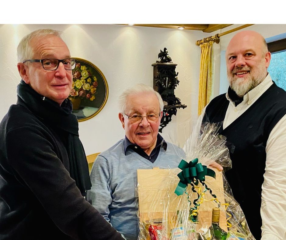 Wenn auch pandemiebedingt etwas verzögert, aber dennoch von ganzem Herzen, überreichte Joachim Beck gemeinsam mit WümS-Gesch.ftsführer Wolfgang Weier einen Präsentkorb aus dem Hause Kaufhof mit zahlreichen Köstlichkeiten der unterfränkischen Heimat und übermittelten die herzlichsten Dankes- und Glückwünsche von Vorstand, Beirat, Geschäftsstelle und aller Mitglieder.