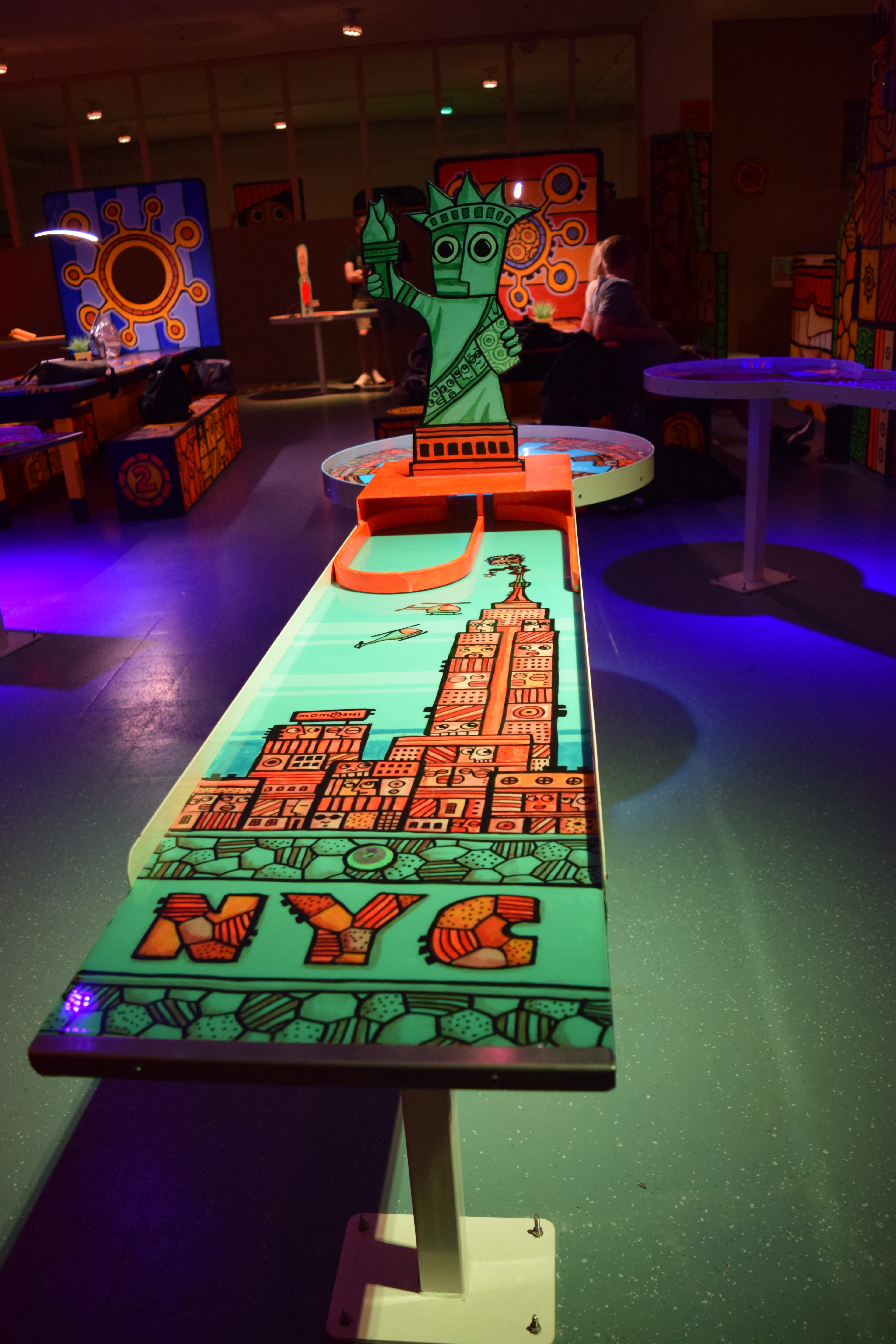 The black light factory offers a large indoor activity park in 3D optics illuminated with black light. 3D-minigolf, a table minigolf of sorts, can be played on 18 different fields that depict, for example, Würzburg's Marienberg Fortress. In addition, Poolball (a mixture of football and billiards) and Escape Games are offered.
