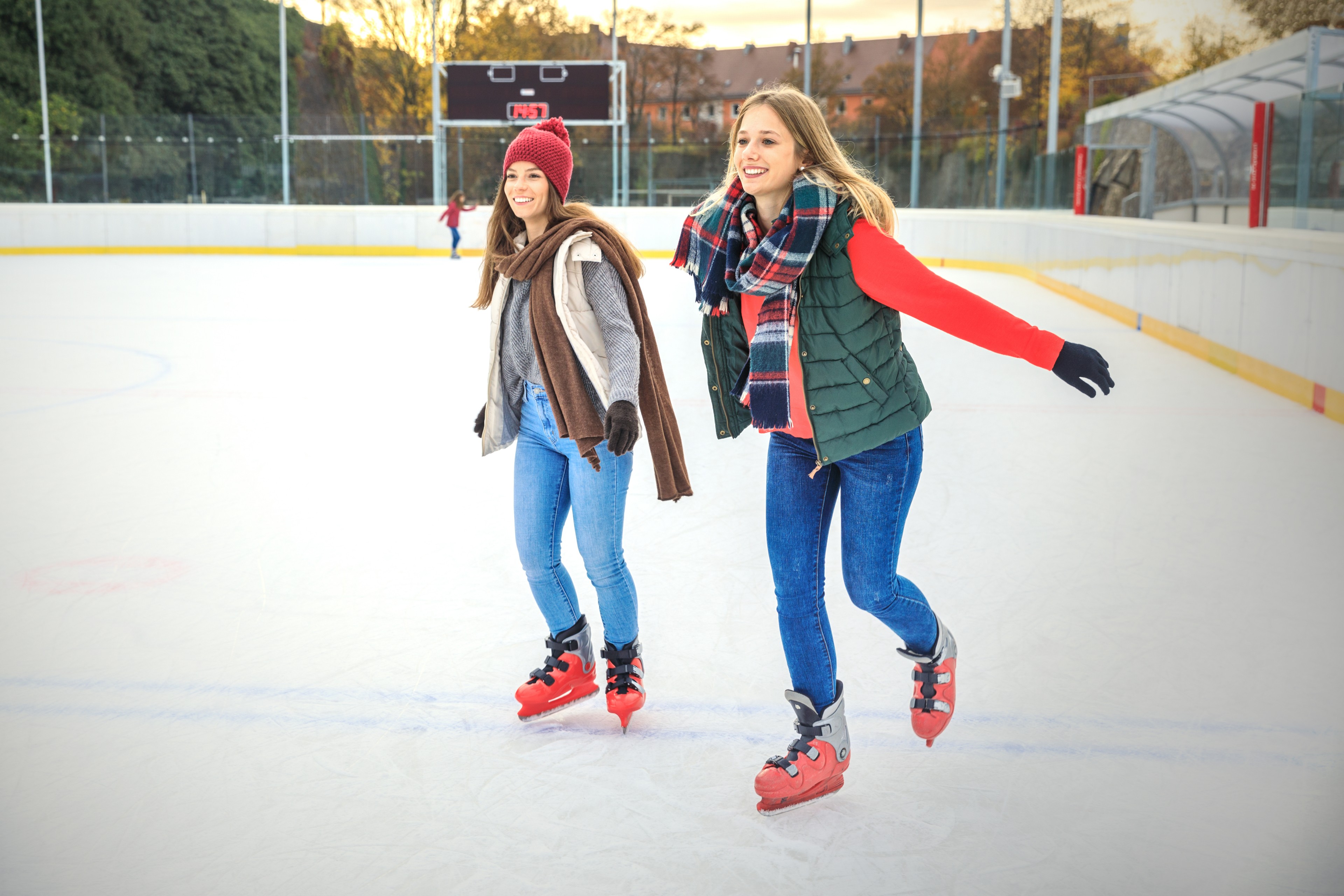 The ice rink next to the Nautiland waterpark offers a unique ambience surrounded by historic fortress walls.