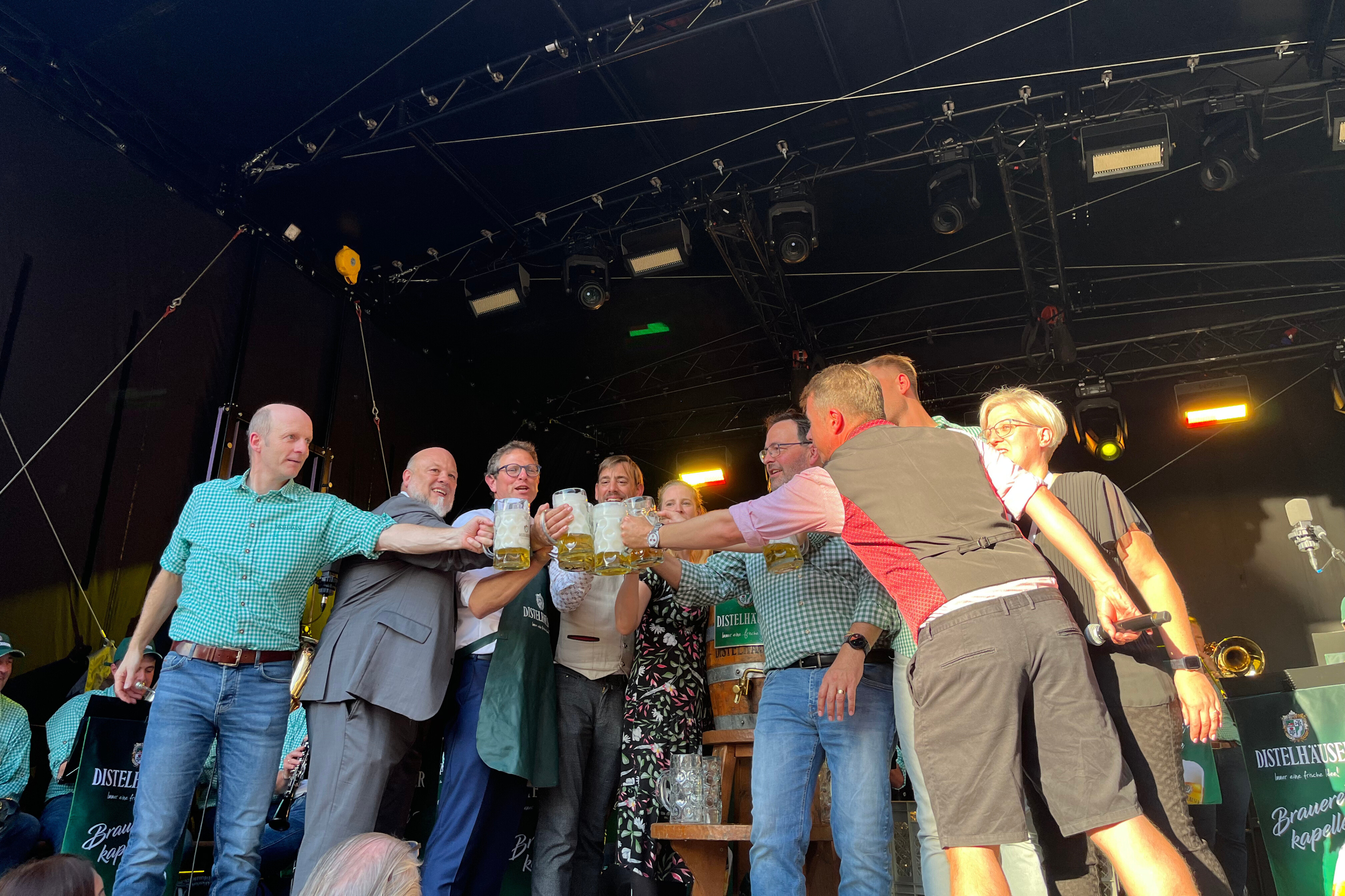 Um 17:45 Uhr auf der TV-Mainfranken Bühne (Eichhornstraße) mit Distelhäuser Bieranstich
