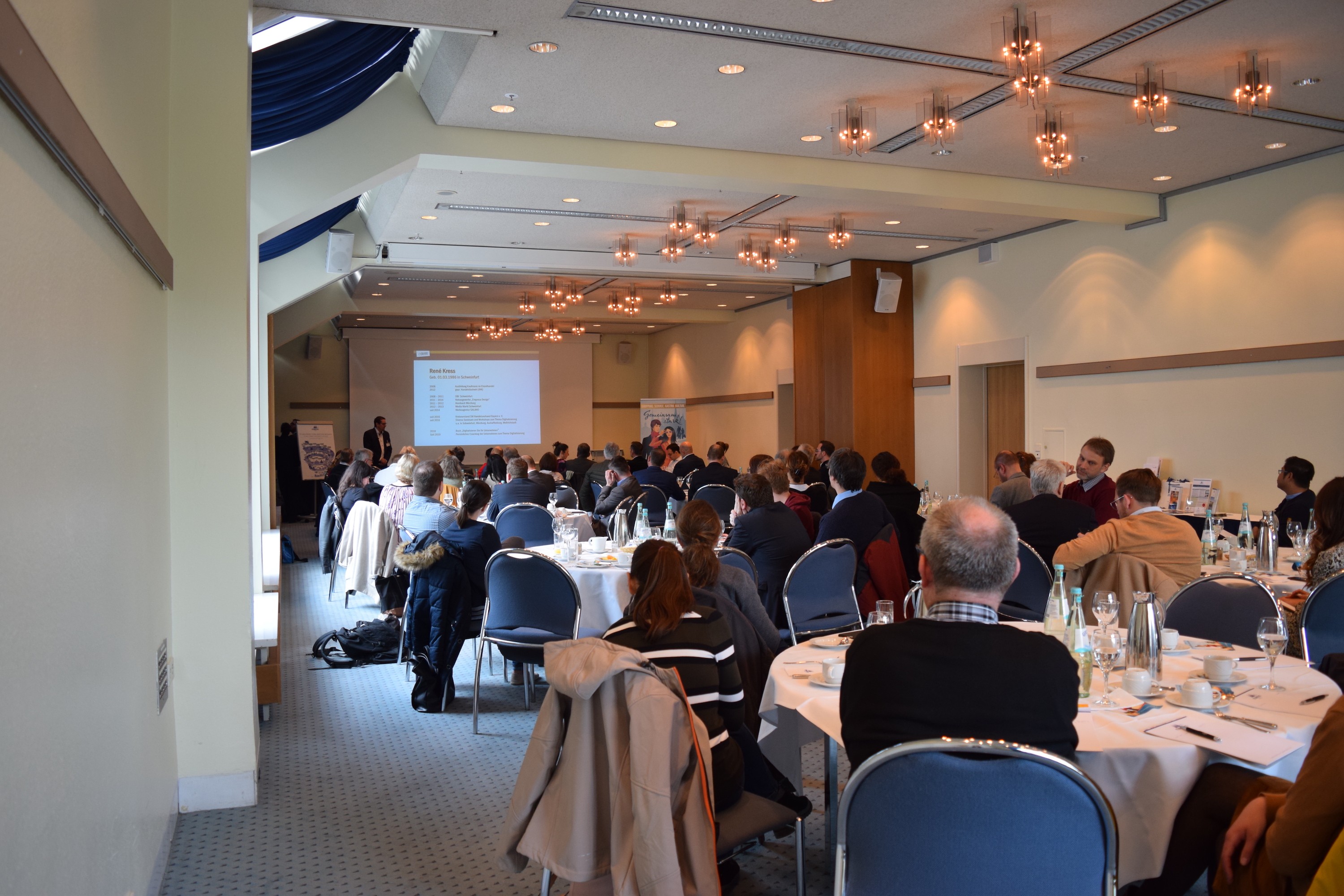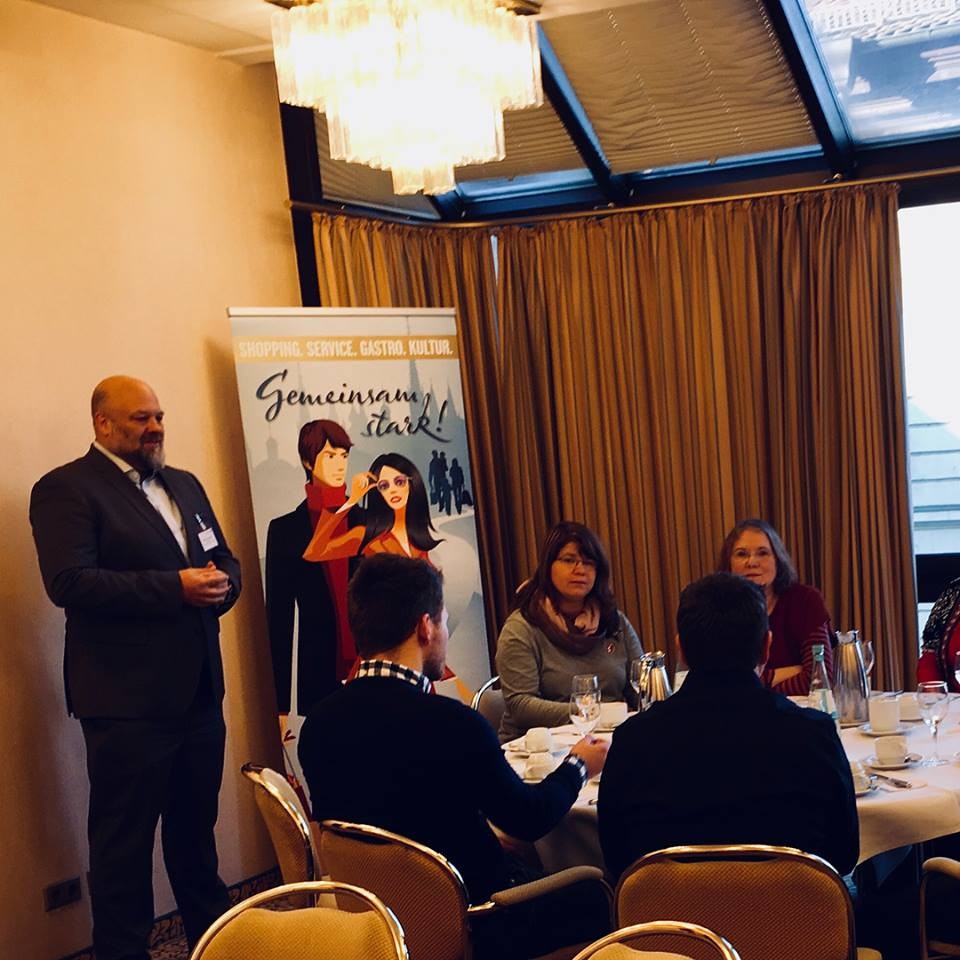 Vorstellung des EUROPE DIRECT Informationszentrums durch den EU-Koordinator Holger Morell und Information über Fördermöglichkeiten bei Beschäftigung von Mitarbeitern au den 28 EU-Mitgliedstaaten. Ebenso Information durch Dieter Wolf ((Vorstandsvorsitzender des Unternehmensnachfolgezentrums Deutschland e.V.) über das Thema „Unternehmens- nachfolge“. Im Anschluss hat das Hotel Rebstock für alle Interessierten eine Führung durch die neu gestalteten Küchen- und Restaurantbereiche sowie Gästezimmer angeboten.