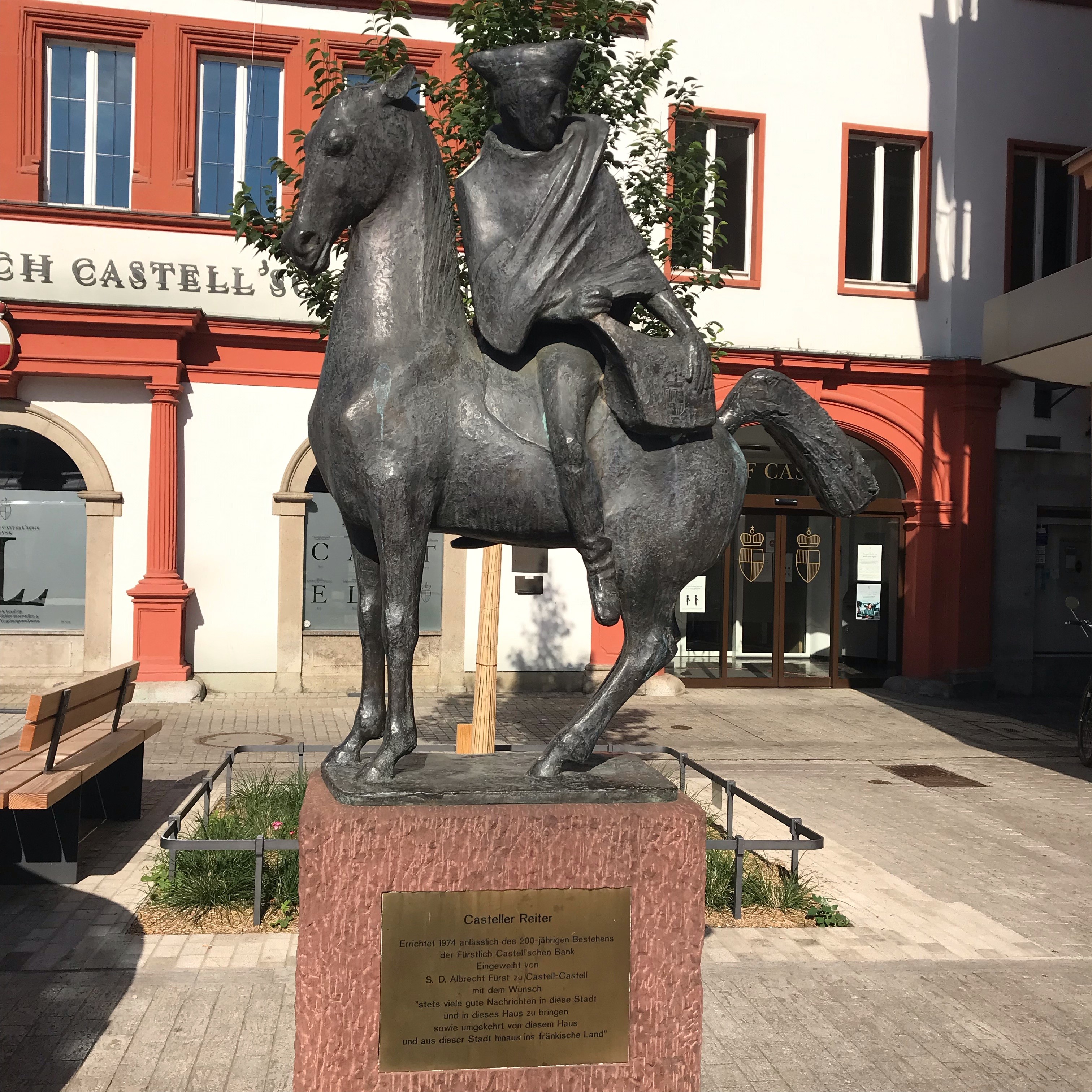 The statue was set up in 1974 in order to redesign the forecourt of the Castell Bank. It was a donation of the Castell-Bank and owner Albrecht Prince zu Castell on the 200th anniversary of the bank. The Statue was built by Otto Sonnleitner.